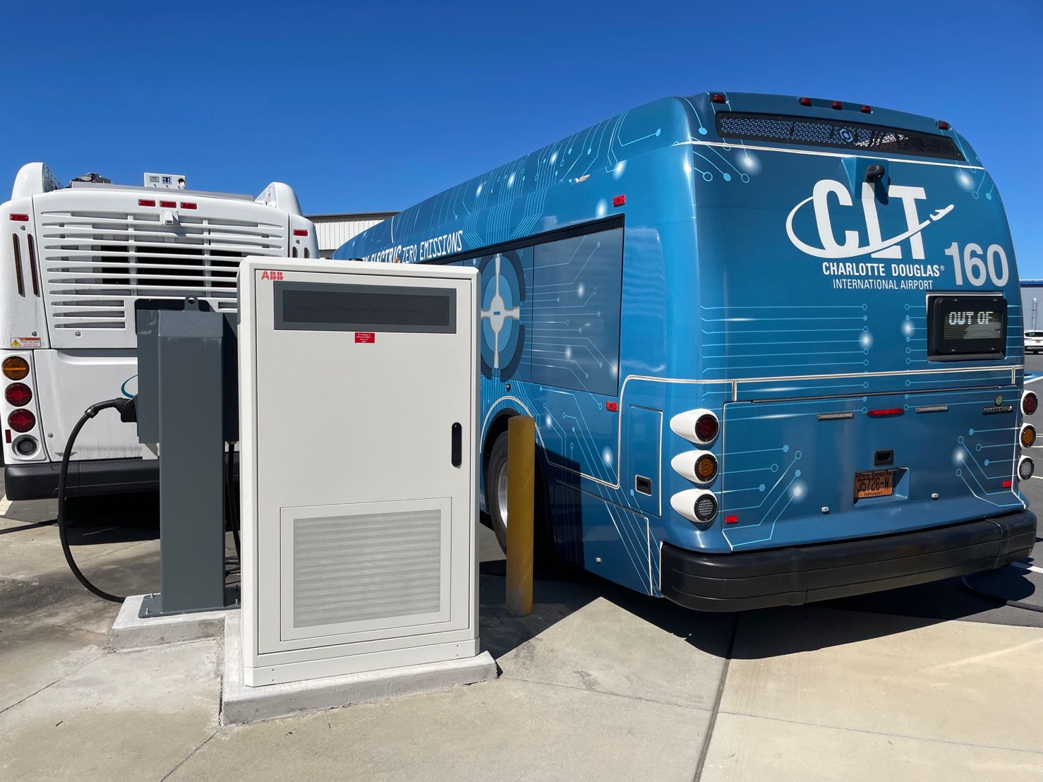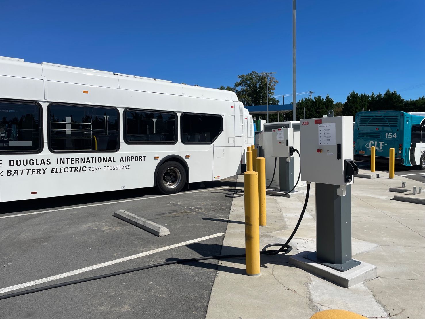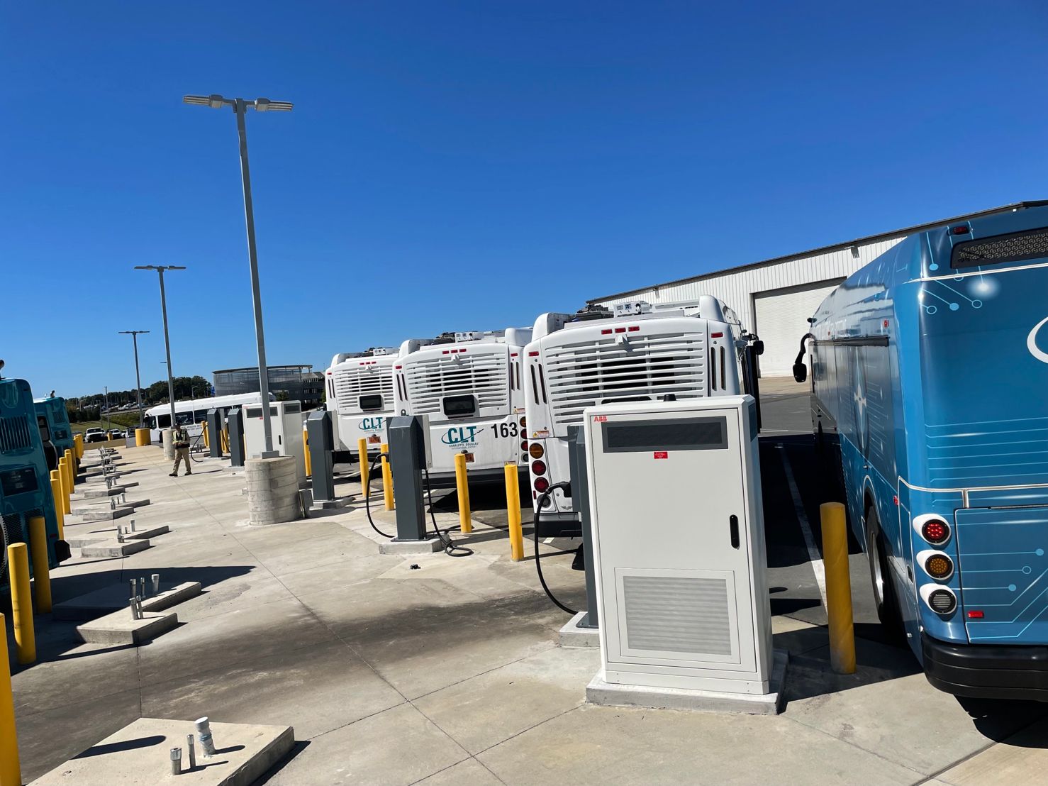 These 150kw ABB chargers with three dispensers each are providing the power to keep the Charlotte Airport’s bus fleet going.