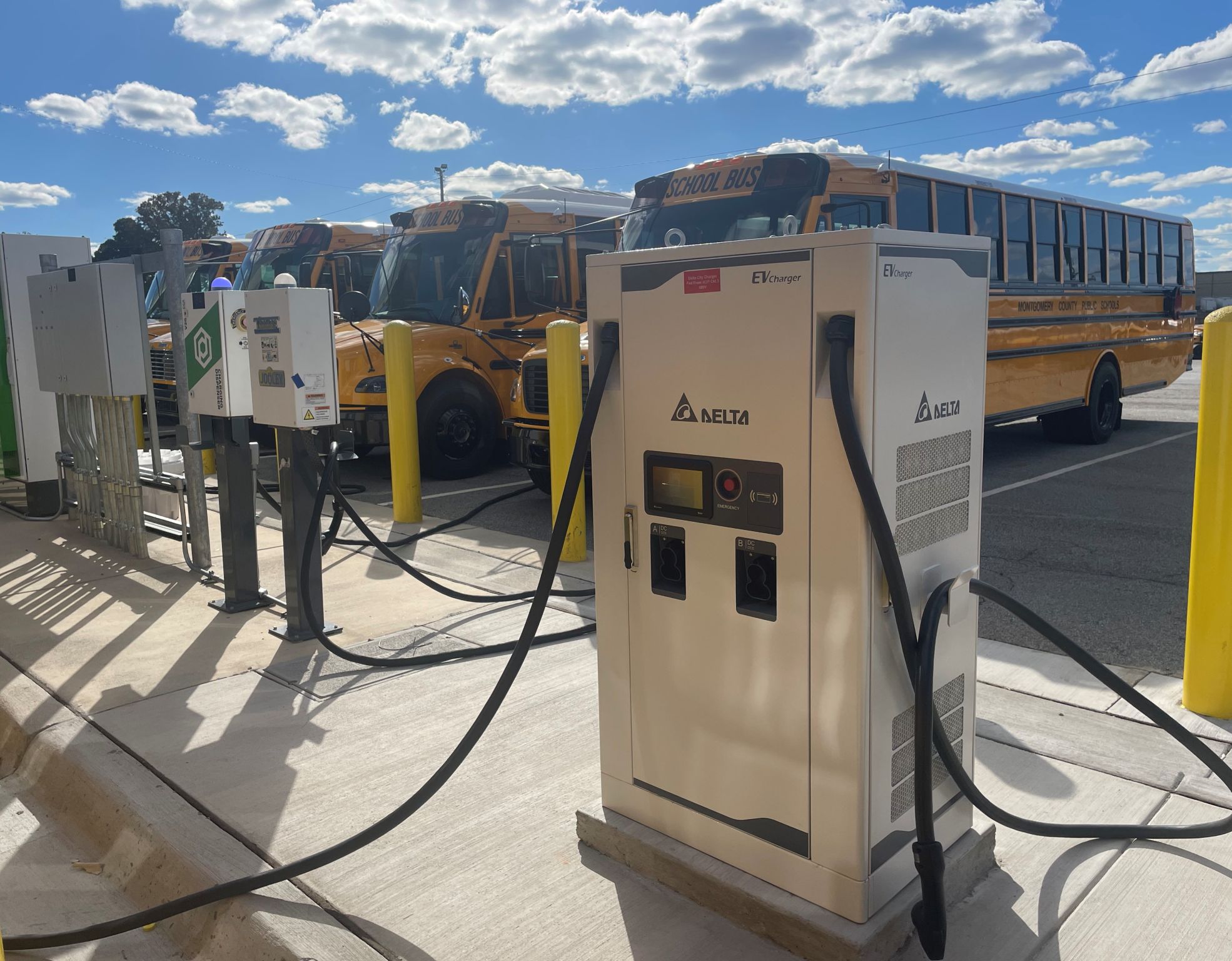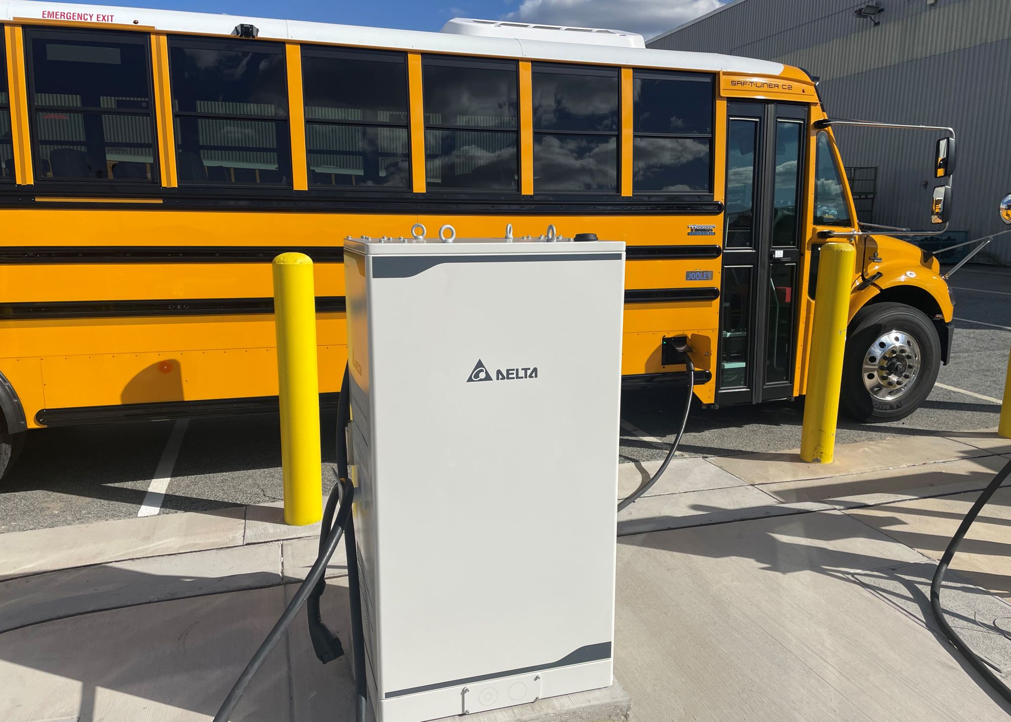 This Delta 100KW DC fast charger was installed at Thomas Built Buses High Point Manufacturing Plant to support their Jouley Electric School Buses.